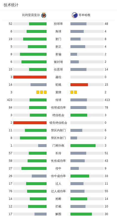 北京时间12月11日,欧洲冠军联赛联赛阶段第6轮,比利亚雷亚尔迎战哥本哈根。比赛伊始,哥本哈根迅速取得进球,埃尔尤努西接马科斯-洛佩斯助攻率先破门。下半场易边再战,阿霍马克送出助攻,科梅萨尼亚破门为比利亚雷亚尔扳平比分。仅过片刻,哥本哈根由扎格助攻阿舒里再次将比分超出。随后,佩德拉萨助攻奥卢瓦塞伊建功,双方再度回到同一起跑线。临近终场,科内柳斯攻入关键一球,帮助哥本哈根完成反超。最终,比利亚雷亚尔以2比3不敌哥本哈根。