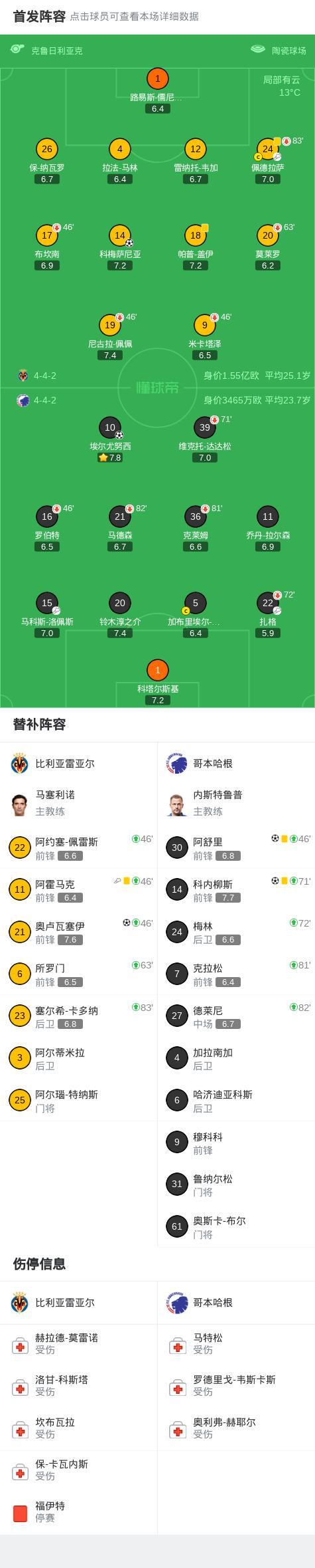 比利亚雷亚尔2-3哥本哈根,科内柳斯制胜,埃尔尤努西闪击